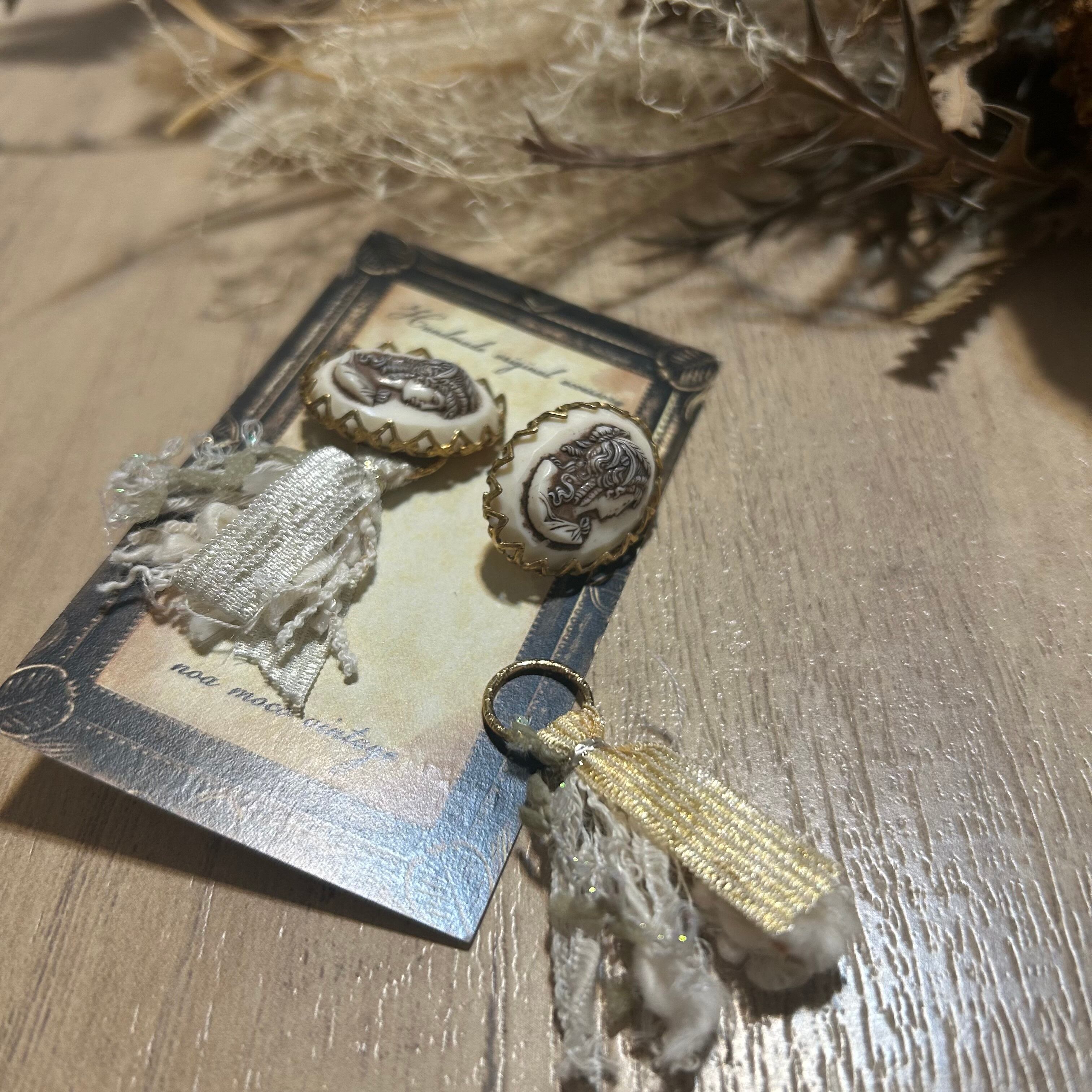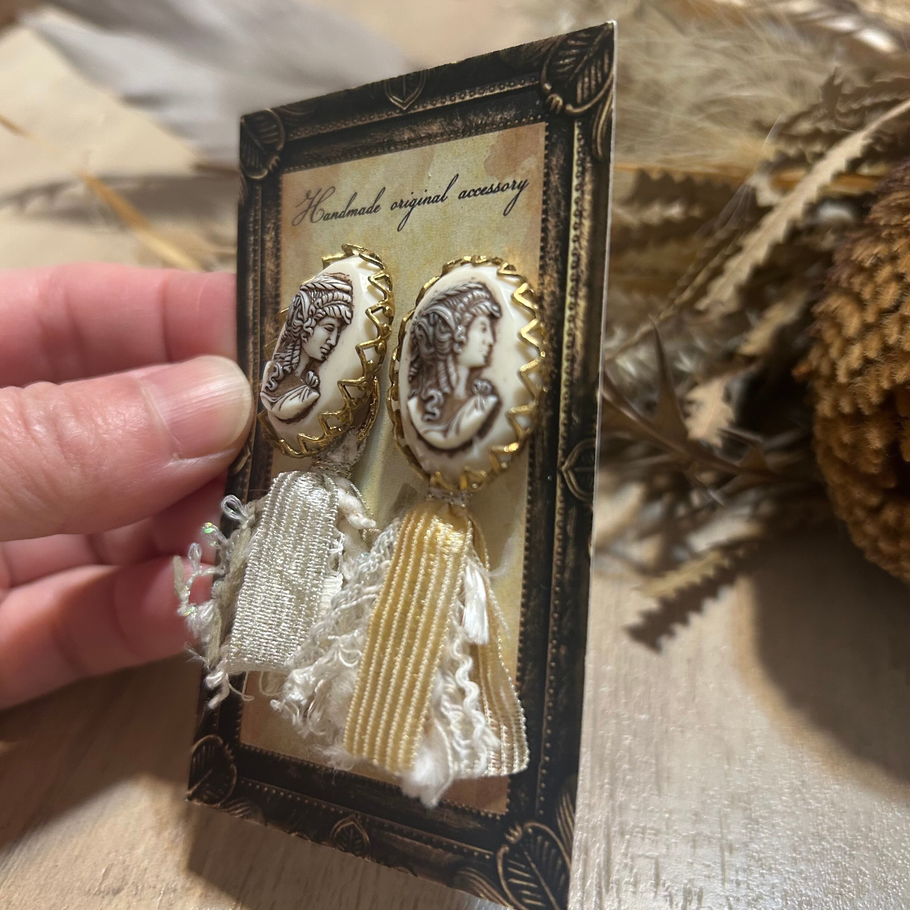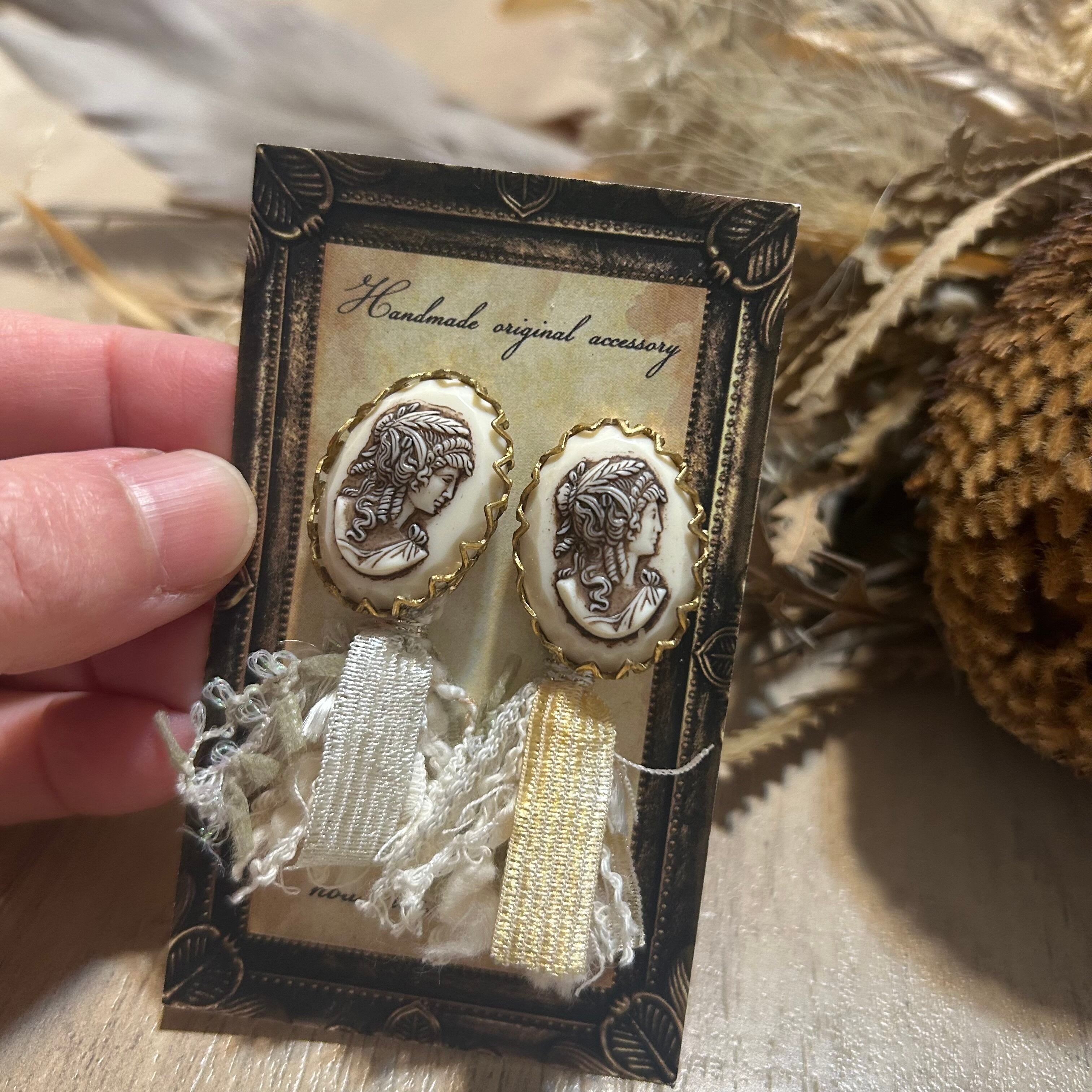 このピアスは、ヴィンテージカメオの魅力を存分に楽しむことができる特別なアイテムです。身につけることで、あなたのスタイルに上品さと華やかさを添え、日常のコーディネートに個性的なアクセントをプラスします。ボヘミアンスタイルからシンプルな装いまで、さまざまなシーンで活躍します。