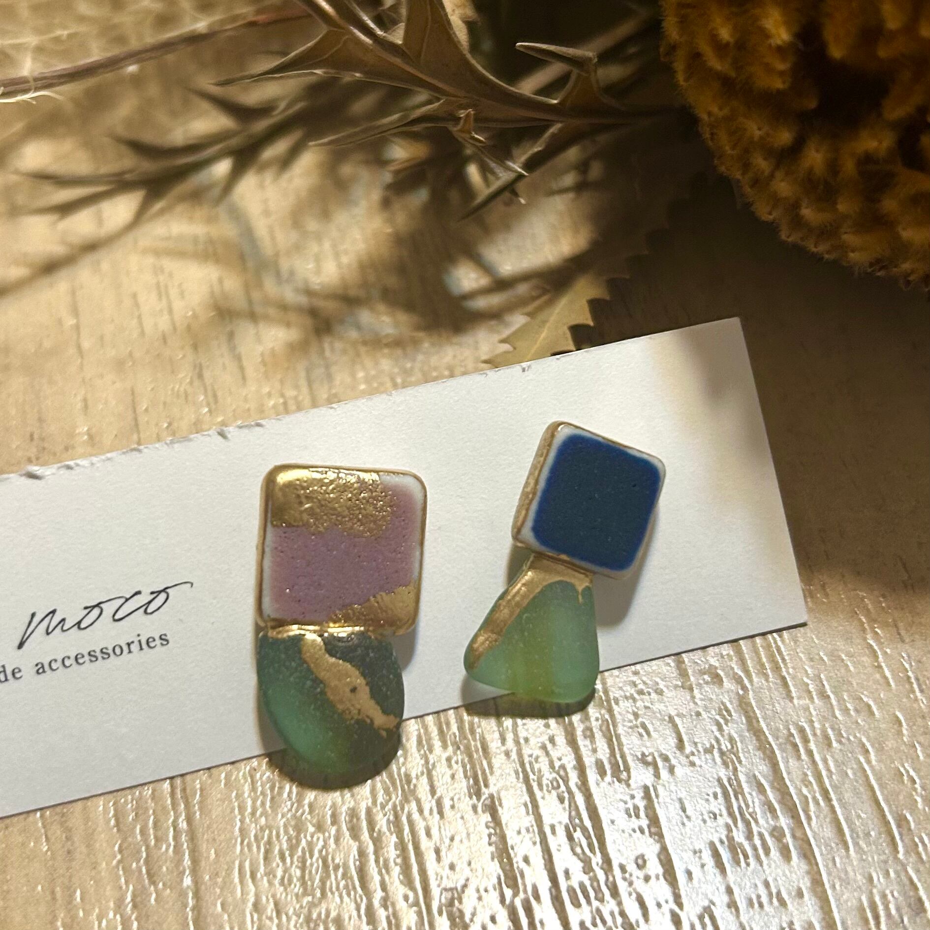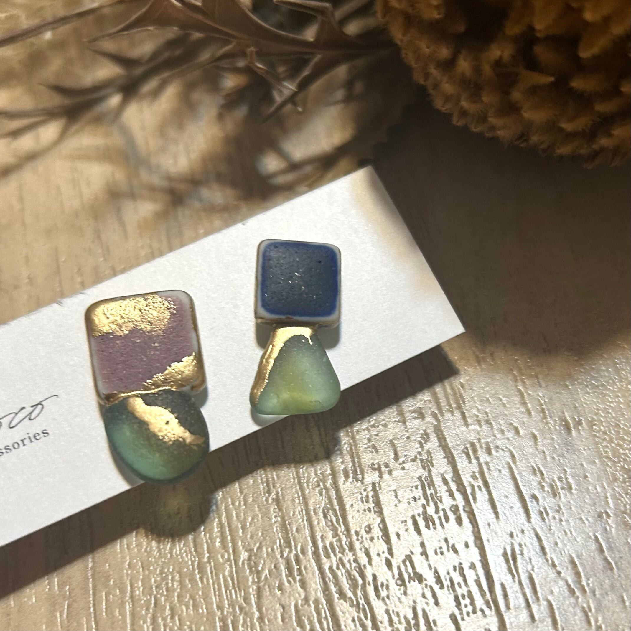 # シーグラス シー陶器 金継ぎピアス