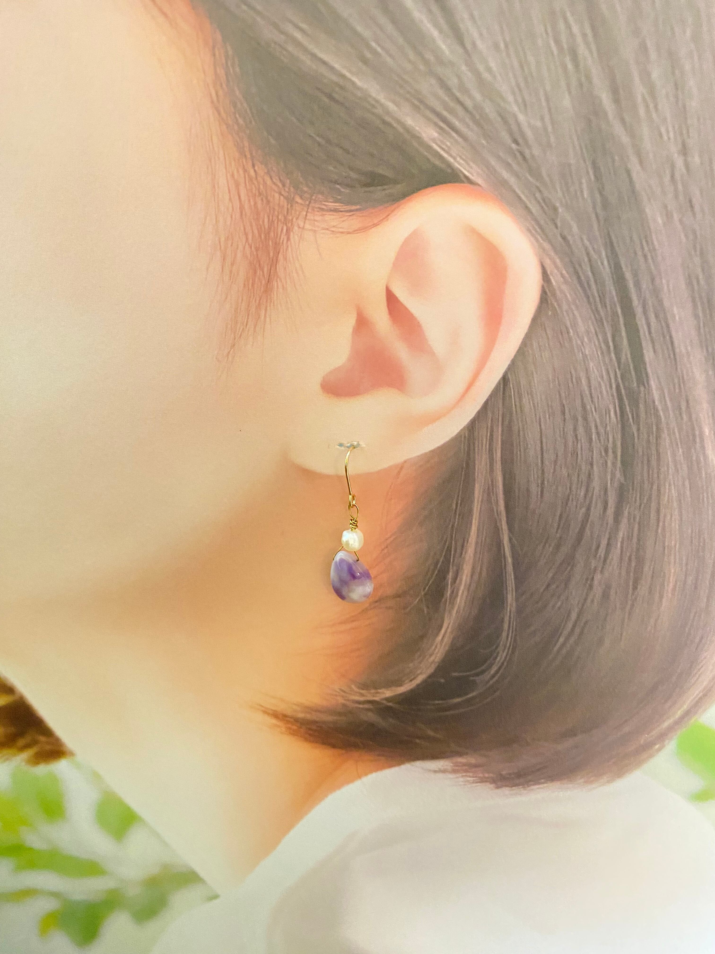 #天然石ピアス #原石アクセサリー #パワーストーン #天然石ジュエリー #天然石 #ガラスビーズ #パープル #ハンドメイド #ハンドメイドアクセサリー #アクセサリー #夏 #秋 #ティファニーストーン #マーブル #ハンドメイドピアス #ピアス