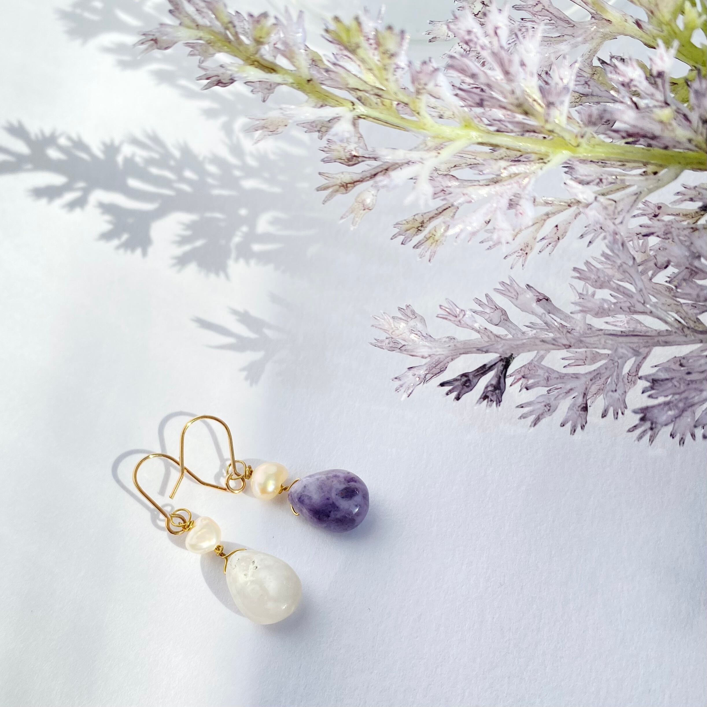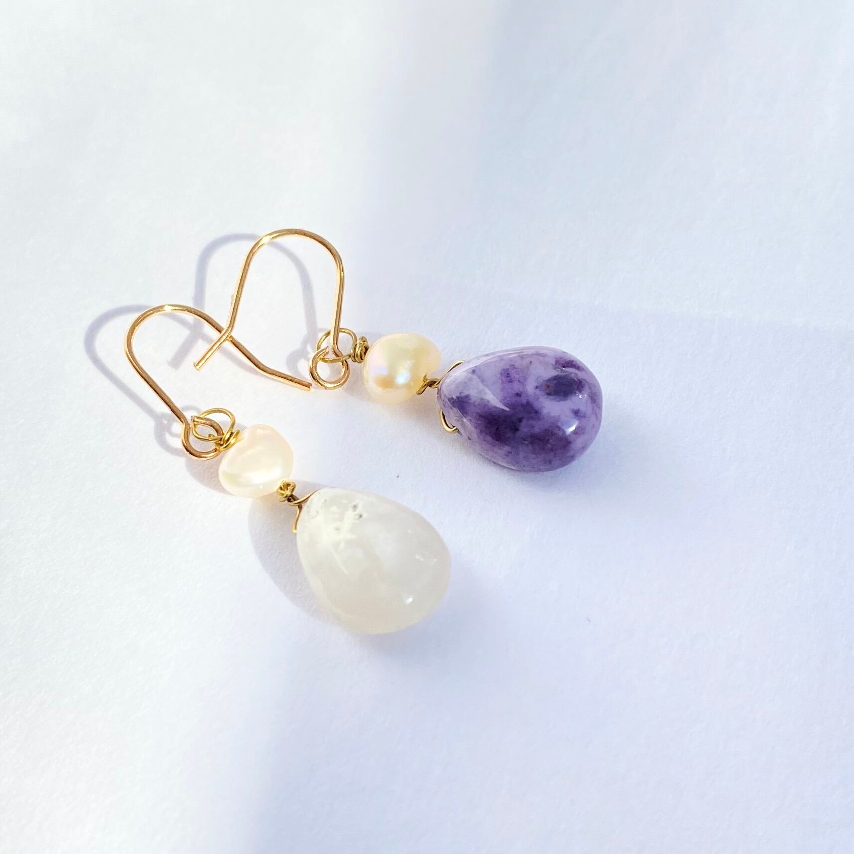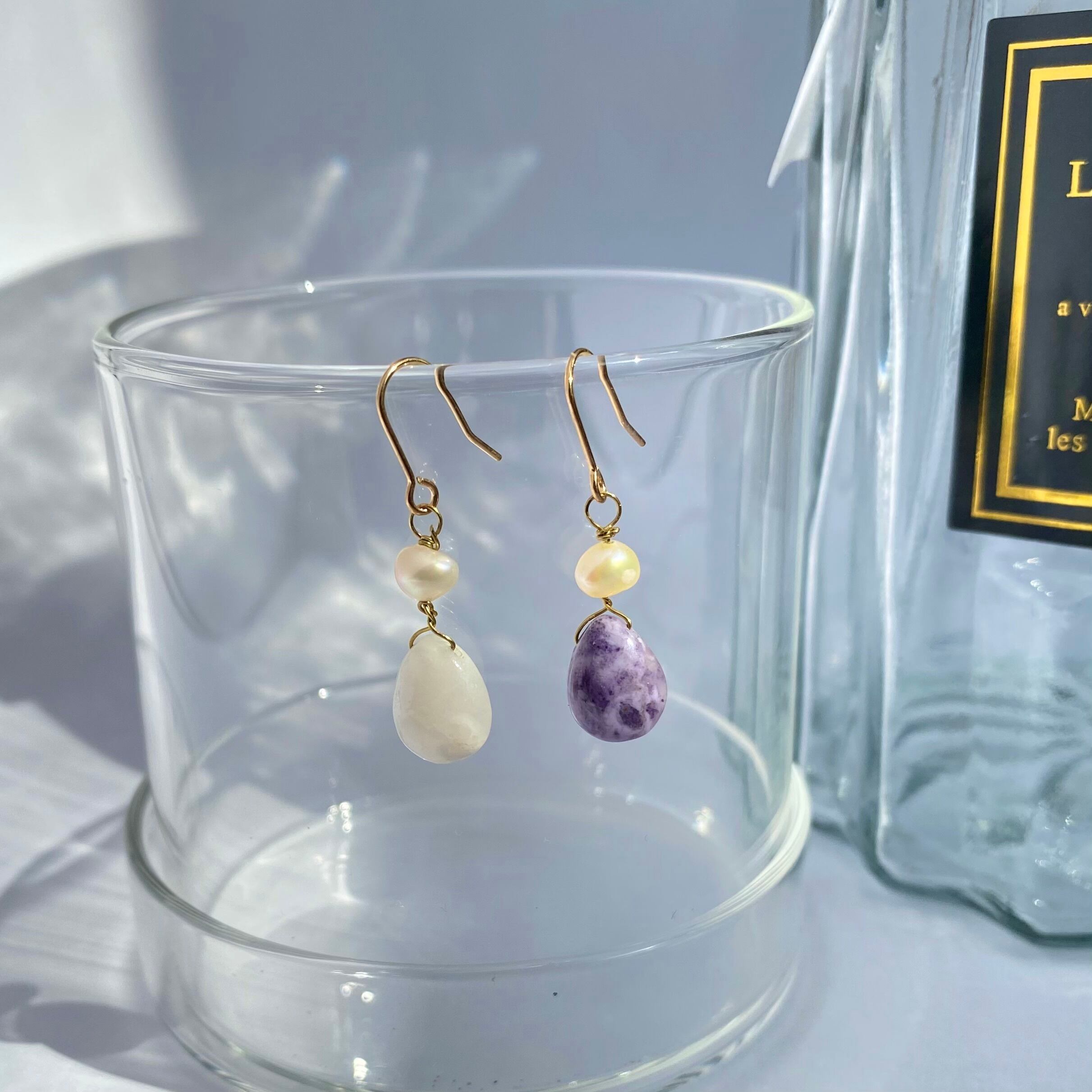 #天然石ピアス #原石アクセサリー #パワーストーン #天然石ジュエリー #天然石 #ティファニーストーン #マーブル #ハンドメイドピアス #ピアス #ガラスビーズ #パープル #ハンドメイド #ハンドメイドアクセサリー #アクセサリー #夏 #秋