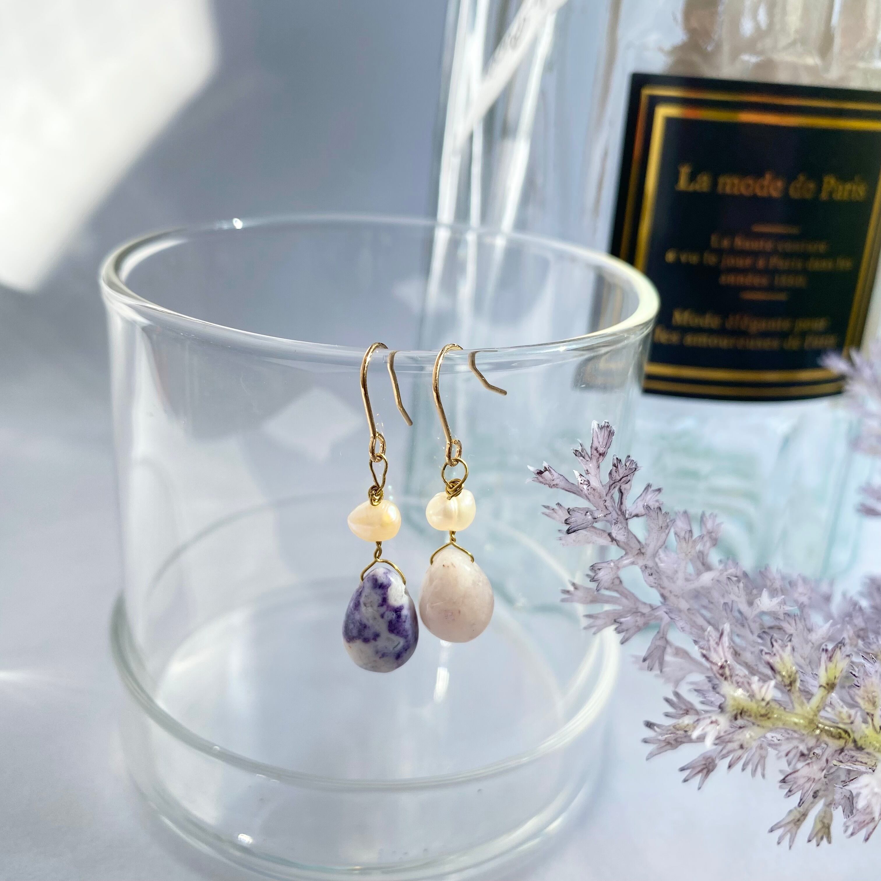 #天然石ピアス #原石アクセサリー #パワーストーン #天然石ジュエリー #天然石 #オパール #ピアス #ハンドメイドピアス #ティファニーストーン #マーブル #ガラスビーズ #パープル #ハンドメイド #ハンドメイドアクセサリー #アクセサリー #夏 #秋