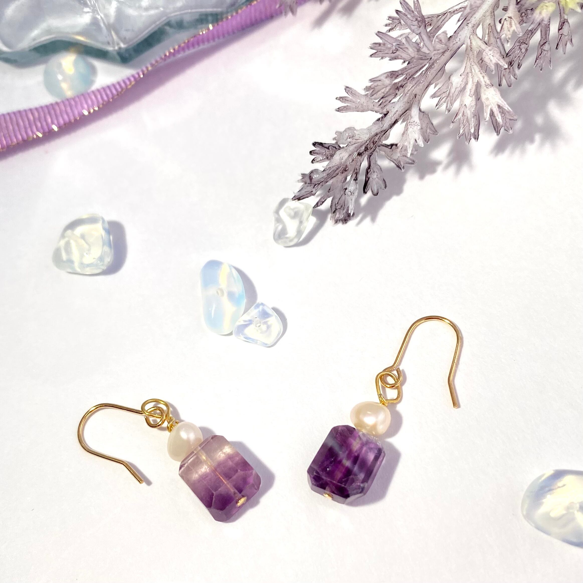 【フローライトのピアス】