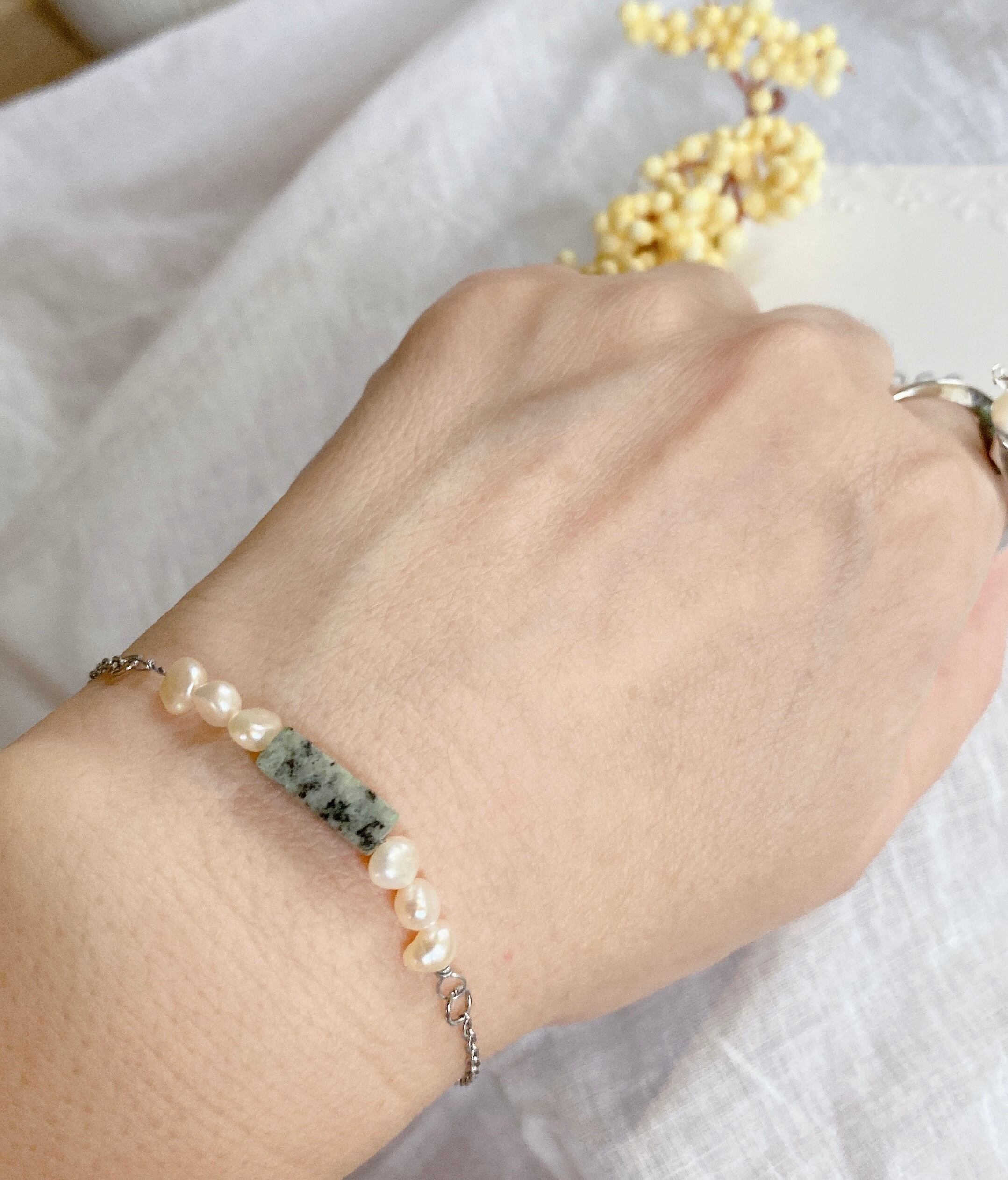 ❤︎グリーンダルメシアンジャスパーのブレスレット