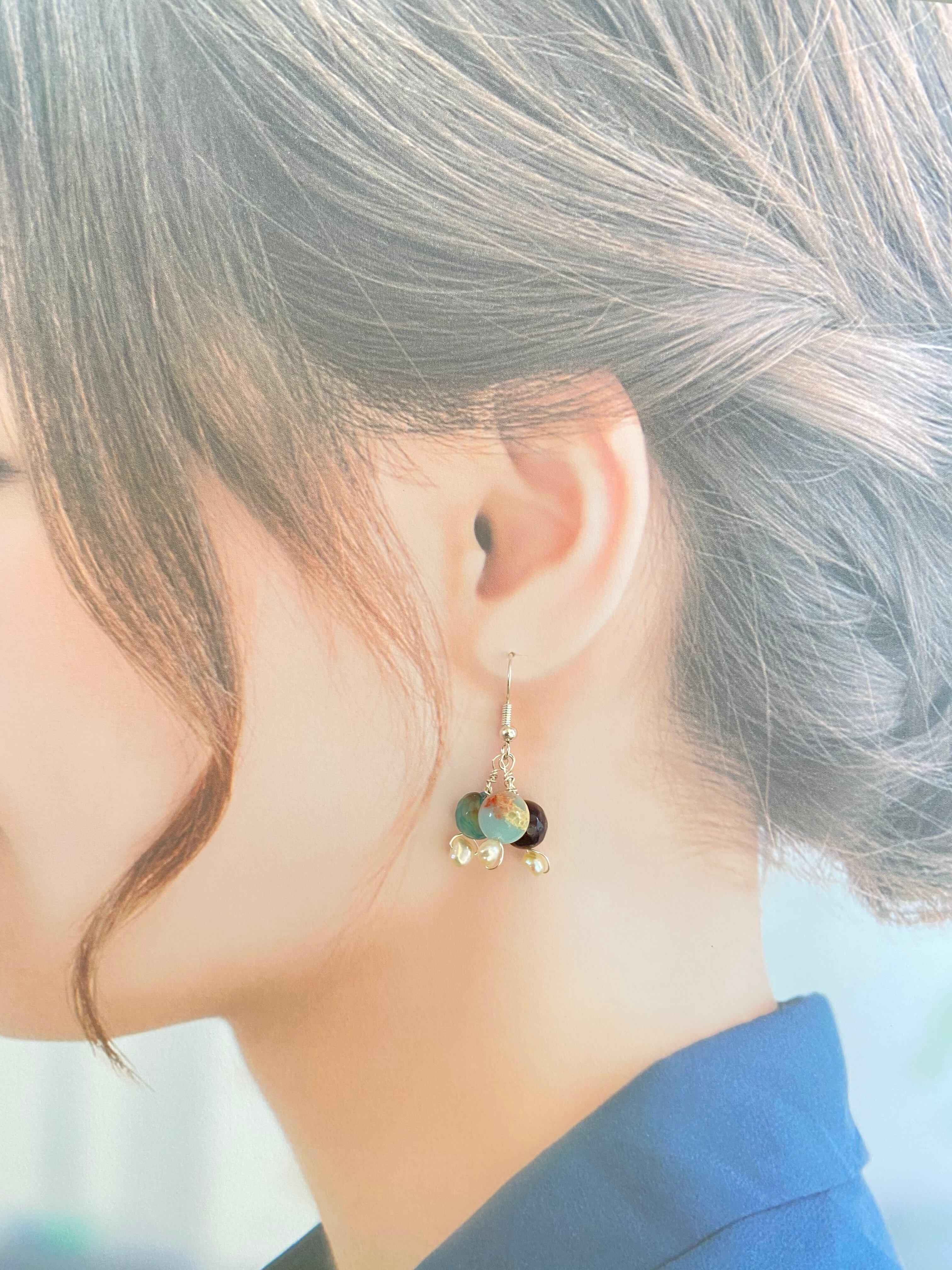 #原石アクセサリー #天然石 #天然石アクセサリー #ハンドメイド #天然石ピアス #ピアス #イヤリング #原石 #ハンドメイドピアス #ホワイト #秋の新作 #秋 #秋色 #秋色アクセサリー #インプレッションストーン #ハンドメイドピアス #くすみカラー #大人かわいい