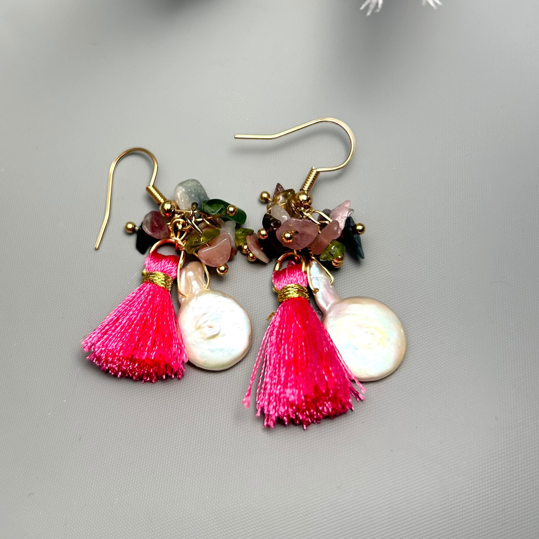 #原石アクセサリー #天然石 #天然石アクセサリー #ハンドメイドアクセサリー #天然石ピアス #ピアス #イヤリング #ハンドメイドピアス #アクセサリー #くすみカラー #大人可愛い #パワーストーン #春ピアス #ケシパール #淡水パール #トルマリン #タッセル